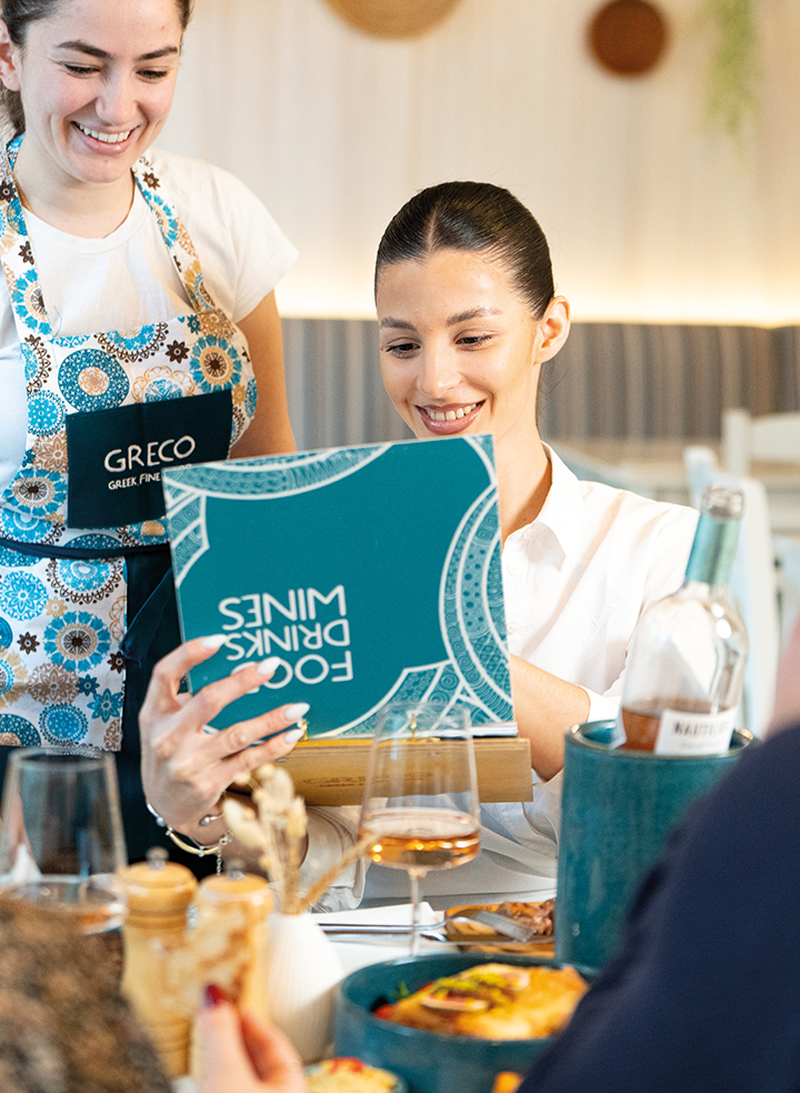 Bei uns geht’s nicht nur um Essen – hier erlebst du echtes Griechenland Feeling. Frische, regionale Zutaten wandern jeden Tag direkt in unsere Küche. Dort wo das Herz vom Greco steckt: Mit viel Liebe zum Detail zaubert unser Team authentische griechische Klassiker – modern interpretiert, aber immer mit Respekt vor den traditionellen Rezepten. Greco ist mehr als ein Restaurant – es ist der Ort, an dem du dich wie Familie fühlst: Wo kulinarisches Genüsse, lebendige Gespräche und herzliche Gastfreundschaft Hand in Hand gehen.